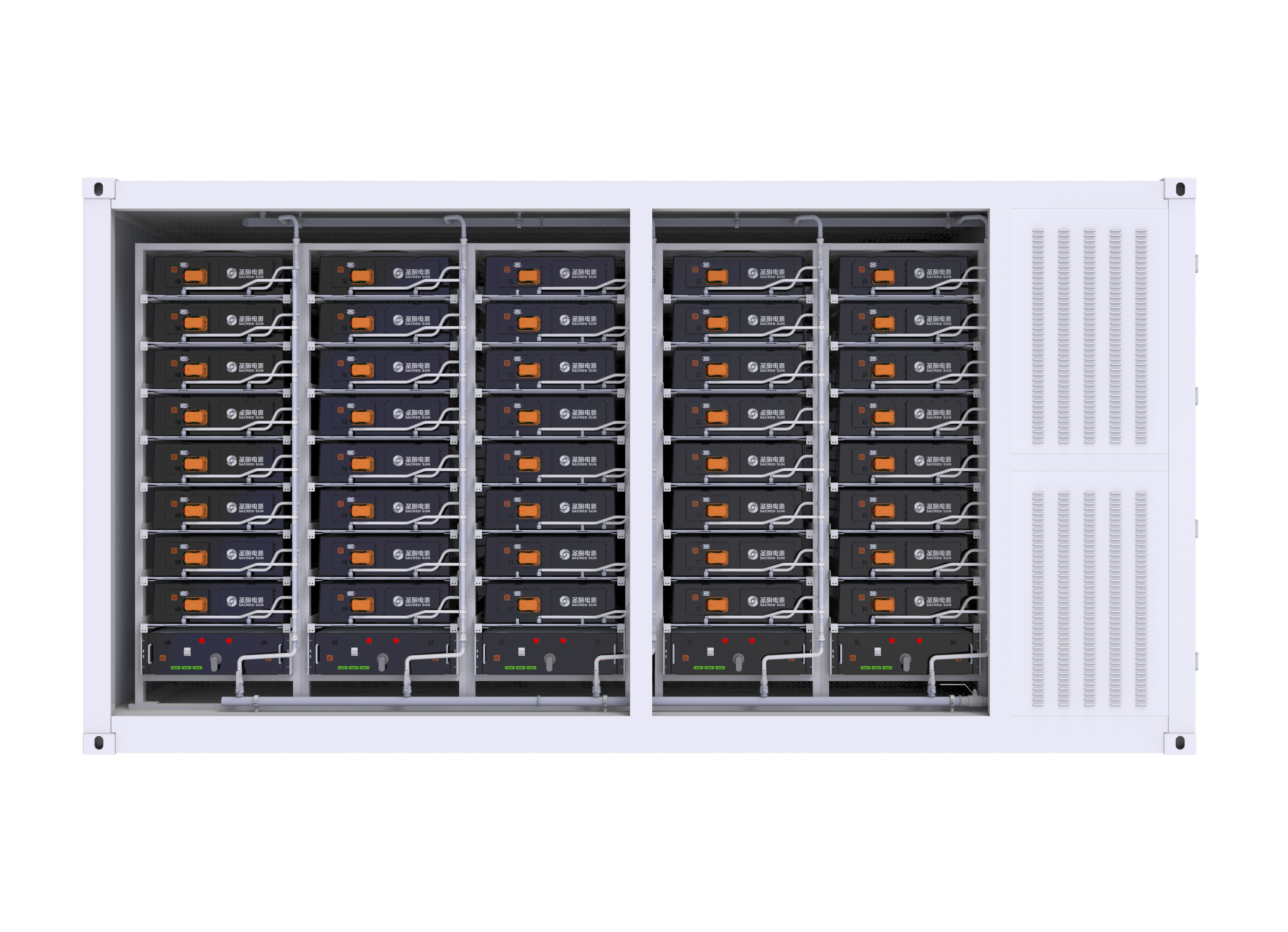 高集成:非步入式设计、1500V系统集电池、消防、温控为一体